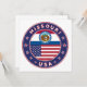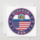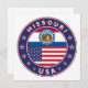 Crachá do Missouri com pavilhão do Missouri e bandeira dos EUA cores, forma arredondada. Emblema do Missouri. Selo do Missouri. Coleção dos Estados Unidos.