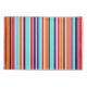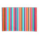 Esta fronha tem um simples design de faixas verticais de espessura variável em vermelho, laranja, roxo, preto, azul claro e branco.
