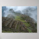 As famosas ruínas de Machu Picchu em névoa, como os caminhantes veem do Caminho Inca. Este é o sítio arqueológico mais famoso do Mundo Inca. Em julho de 2007 Machu Picchu foi eleito uma das 7 Novas Maravilhas do Mundo.