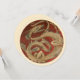 Ilustração vintage de criatura mitológica apresenta um dragão japonês ou chinês dourado art nouveau em um círculo vermelho. Na Ásia, o dragão pode ser um símbolo de boa fortuna ou boa sorte. Semelhança com uma serpente marinha com nadadeiras ou um lagarto animal réptil.