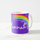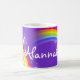 Arco-íris brilhante e colorido "que seus" miúdos conhecidos agridem. Presente perfeito para uma criança vibrante. A caneca lê: "Alannah" ou personaliza esta caneca com o nome de sua escolha até 7 letras. Caneca projetada exclusivamente por Sarah Trett.