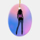 Moças da Moda © Sunny Mars Designs. Um ornamento oval padrão, legal, fofo, moderno, moderno, moderno e feminino, com a silhueta de uma linda jovem e glamourosa diva ou modelagem de modelo e posando em seus jeans azuis na moda.