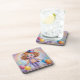 Este conjunto de portas copos apresenta uma pintura de canvas com escova de ar acrílica de uma alegre garota palhaçada com um cabelo de gengibre bonito estilhaçado por ondas leves e brincalhonas. Ela tem maquiagem de palhaço pastel destacando suas bochechas rosadas e olhos expressivos, vestindo um chapéu de lavanda enfeitado com uma fita azul brilhante. A garota está vestida com uma camisa de botão de pêssego, um colete de lavanda, uma gravata de bolinhas lavanda e rosa, calças e calçados de lavanda, com balões coloridos. O fundo é uma espiral sonhadora de tons pastéis de suaves pintas, blues, lavanda, amarelo e pêssego criando uma atmosfera suave e nebulosa que acentua a natureza alegre da cena. A porta copos é uma porta copos quadrada de plástico duro com um suporte de cortiça em um conjunto de portas copos com seis portas copos.