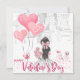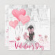 Moça Rosa/Balão de bicicleta/Cartão de Dia de os namorados. Uma garota elegante segura um buquê de flores neste cartão de Dia de os namorados. Ao fundo, uma bicicleta rosa é decorada com balões e flores. Balões cor-de-rosa adoram um lado. Garota parada em um confete em forma de coração. Envie o cartão a um amado no Dia de os namorados para mostrar o quanto você se importa com eles.