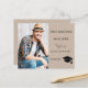 On front: Add your own vertical size photo of the graduate. A trendy mocha, beige colored background, black text. Templates for a name and date. The name is written with a modern hand lettered style script. With a cap, tassel topper.