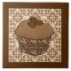 Azulejo cerâmico - Cupcake com glacé de mocha revestido com grãos de café cobertos de chocolate, em um invólucro decorativo, marrom de chocolate e cupcake bronzeado, sobre um fundo de chocolate leve e cor de bege