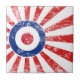 O design de rotundo de explosão solar estilo asiático apresentou-se aqui em um impressão gráfico de estilo angustiado. Bom para uma ocasião patriótica, esportes, ou para um presente com uma aparência retrô ska.