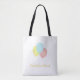 Moda três balões Tote Bag. Os balões coloridos em amarelo, turquesa e rosa têm uma mensagem de texto: Celebrar bons momentos. O texto pode ser personalizado.