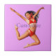 Garota vermelha de cabelos negros vestindo biquíni salta alto dançando para personalizar, personalizar mudando para seu nome