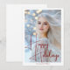 Este glamouroso cartão de Natal hollywoodiano chic é perfeito para um modelo ou ator que é a estrela do show. Feliz Natal escrito em uma assinatura de celebridade manuscrita para uma aparência de foto famosa. Roteiro vermelho elegante sobre sua fotografia vertical favorita de cabeça.