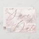 Este modelo de cartão postal de aviso de data personalizável tem uma fotografia suave de peônias rosa como fundo, fonte superdimensionada, texto é editável e personalizável, basta clicar no botão Personalizar para torná-lo seu e parabéns, aproveite!