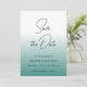 Modelo de Caligrafia Simples em Azul Teal e Verde Moderno Minimalista com Convites de Código QR do seu Site de Casamento & Papelaria & Anúncios / Salve as Datas / Cartão de Salve a Data Impresso Plano.