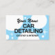 Carro detalhando o modelo de cartão de negócios. Cartão personalizado da empresa com bolhas de sabão e design de faísca. Cores azuis ou personalizadas. Cartão de visita profissional para a indústria de limpeza automóvel, lavagem de automóveis, enceramento, reparação de automóveis e muito mais. Também é útil para outros serviços de limpeza, tempo parcial ou cheio.