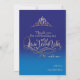 Modelo de cartões de agradecimentos de Quinceañera. Design moderno e delicado em azul real e ouro com um lindo sinal de caligrafia. Adicione seu próprio texto e foto com a ferramenta de edição Zazzle fácil de usar! NOTA: os detalhes dourados são imitação. Não é utilizada qualquer folha de alumínio.