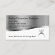 Cartões de visitas de cuidador com elementos gráficos de design de tom prateado simulados de classe e estilo moderno, incluindo um símbolo de cuidador. Melhores cartões de visitas para temas relacionados com a saúde doméstica, a enfermagem domiciliar, a assistência a idosos ou a CNA.