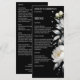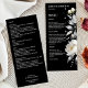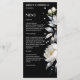 Cartão de menu de modelo de casamento elegante com flores de peônia boho preto e branco e grama pampas