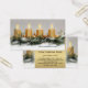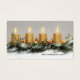 Certificado de presente festivo em tamanho de cartão de visita, apresentando velas douradas com galhos de pinheiro na neve. Lindíssimo para as Festas de Natal.
