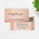 Cartão-presente do tamanho Elegante cartão de visita em cor de pêssego e rosa-pincelado com um revestimento de ouro rosa. Um modelo de logotipo e um modelo de código QR são adicionados para sua conveniência. Bonita para um salão de beleza, massagista ou um negócio de varejo para uma clientela feminina.