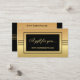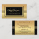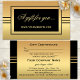 Voucher de cartão de presente tamanho cartão de visita elegante em dourado e preto com listras. Bonito para qualquer negócio e também ótimo para as Festas!