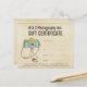 Modelo de certificado de presente de fotógrafo do designer de tendências para que você preencha com seu próprio texto e logotipo comercial de fotografia. Escreva facilmente o texto de exemplo com o seu próprio e faça o upload do logotipo da sua empresa para dar esse acabamento profissional extra! Parece que contratou um designer gráfico de negócios pessoal, mas não o fez - assim como você só tem que pagar uma fração do custo desses certificados de oferta brilhante de cor de cheio impressível. Preencha os detalhes de sua empresa sobre o texto do modelo. Todo o texto pode ser adaptado ou movido como quiser. Se quiser continuar a mover, redimensionar, adicionar ou alterar o texto, basta pressionar o botão 'personalizá-lo'. Muitos outros designs populares de vale-presente/cartão-presente disponíveis na minha loja zazzle. Se você está atrás de designs especialmente encomendados ou designs alterados especialmente para suas necessidades, então me contate através do zazzle mail.