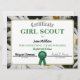 Enquadrada numa bela e fotórica de margaridas, este certificado é para completar a quantidade de "x" anos em escutas para meninas mais novas. E é um modelo personalizável. Você apenas preenche as áreas e fez. No verso, você tem a opção de carregar uma foto de recordação também!