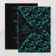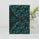 Elegantes espirais azul turquesa em um fundo preto com sobreposição transparente de corte azul turquesa preto amarrada com um laço de cetim preto. Personalize a frente e o verso com sua escolha de estilo e cor de fonte, e cor de fundo.