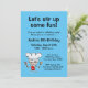 O modelo de Convite de aniversário do miúdo. Convites personalizados para crianças. Personalize o texto do anúncio, o número de idade e a cor de fundo. Desenho divertido do desenho animado do cozinheiro de pastelaria segurando uísque e colher de madeira.