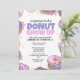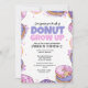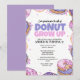 Celebre um aniversário doce com este convite Donut Grow Up! Este convite divertido e colorido com tema de donuts apresenta confeitos, donuts rosa e roxo, e fontes divertidas. Perfeito para crianças ou adultos de qualquer idade. Basta personalizar o texto online e criar uma festa memorável para o seu dia especial. Ótimo para festas de donuts, aniversários ou celebrações doces.