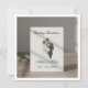 Um design de convite de casamento limpo e minimalista com uma ilustração delicada e desenhada à mão de uma noiva e um noivo no centro. O casal é retratado em uma pose romântica, com a noiva segurando um buquê de flores suave. O fundo é branco, sólido e imaculado, com detalhes do casamento. Este design é perfeito para quem prefere uma estética moderna, sofisticada e sem bagunça para o seu dia especial