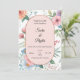 Modelo de Convite de Casamento Floral Elegante - Design de Flores em Aquarela Rosa e Azul | Espaço em Branco Personalizável para Texto | Perfeito para Chá de Noiva, Noivados e Casamentos