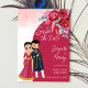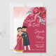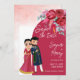 Casamento índio bonito Salve o modelo do convite de data. Viva cor magenta, casal de noiva indiana, rosas burgueses.