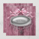 Convite de festa em madeira de celeiro elegante apresenta madeira de celeiro rosa desgastada com redemoinhos prateados e laço rosa. Este convite rústico de madeira de celeiro funciona bem para um convite de casamento, convite de festa de aniversário, convite de chá de bebê cowgirl ou qualquer outra festa ou evento onde você queira um design rústico de estilo ocidental que tenha um toque de elegância. Este modelo de design é facilmente personalizado para a sua festa ou evento. Adicione seus detalhes na frente e/ou verso simplesmente escolhendo o botão laranja "Personalize!" para começar a adicionar os detalhes do seu evento, estilo de fonte, tamanho e cor da fonte e texto. Por favor, note que todos os designs de convite que você encontrará no Zazzle são gráficos impressos em papel liso sem joias, laços, relevos, reentrâncias ou peças ou partes adicionadas.