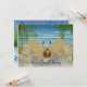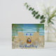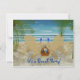 Desenho de uma cena de praia com duas cadeiras de praia viradas para o oceano sob as sombras das palmeiras. Nas cadeiras estão dois copos de vinho. Ao lado das cadeiras há uma cesta contendo um copo de vinho extra, uma garrafa de vinho e um livro. Tudo o que você precisa para um dia relaxante na praia. O convite tem dois lados personalizáveis. Adicione sua própria saudação e informações do evento, escolha o estilo, tamanho e cor da fonte.