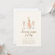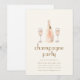 Este modelo de convite de festa com tema francês elegante apresenta um design sofisticado com uma garrafa de champanhe no centro, ladeada por duas taças de champanhe cintilantes de cada lado. A garrafa e as taças são detalhadamente trabalhadas de forma sutil, evocando uma sensação de sofisticação e celebração. Abaixo deste peça central, os detalhes da festa são lindamente exibidos em uma fonte francesa lúdica e estilosa, adicionando um toque autêntico ao tema geral. O modelo captura a essência do charme parisiense, tornando-o perfeito para uma noite repleta de elegância e joie de vivre.