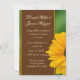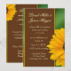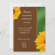 Girassol de ouro amarelo escuro macio com bar de acento de cacau castanho escuro e fundo verde. O tipo de letra inclui um script decorativo divertido e um texto fácil de ler para interesse visual. Este convite é uma brisa fresca de ar do campo... mostrando o tema ambiental verde com os girassóis frescos do país. Mostre seus convites em estilo!
