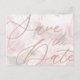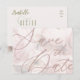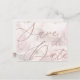 Este modelo de cartão postal de anúncio de Salve a Data personalizável tem uma fotografia discreta de peonias rosa como fundo, fonte superdimensionada, texto é editável e personalizável, basta clicar no botão Personalizar para torná-lo seu e parabéns, aproveite!