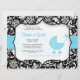 Modelo de chá de fraldas de convite para retro floral preto e azul.