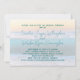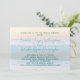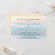 Convites de casamento do nascer do sol. Fontes azul-verdes com nomes em script manuscrito. Um fundo leve de ondas quebradas e céu ouro enquanto o sol nasce. Os nomes dos cheios da noiva e do noivo estão em letra casual e escrita à mão. Este convite é perfeito para uma pequena e íntima cerimônia no ou pelo mar.