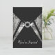 Elegante desenho damasco preto no preto com acabamento diamante e preto, modelo de convite multiusos. Este modelo de design funciona bem como um convite para uma festa de aniversário, coquetel, festa de feriado, evento corporativo, gala, festa de aposentadoria, festa de formatura e qualquer outra ocasião especial. Personalize a frente e o verso com o estilo e a cor da fonte de sua escolha, e você pode alterar a cor do fundo do lado verso.