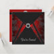 Convite elegante de festa e evento com desenho de damasco preto em vermelho com acabamento em preto e diamante. Este modelo de design funciona bem como um convite para uma festa de aniversário, coquetel, festa de feriado, evento corporativo, gala, festa de aposentadoria, festa de formatura e qualquer outra ocasião especial. Personalize com sua escolha de estilo de fonte e cor da fonte, e cor de fundo do verso.