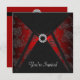 Convite de festa e evento com design preto damasco preto em vermelho com acabamento preto e diamante. Este modelo de design funciona bem como um convite para uma festa de aniversário, coquetel, festa de feriado, evento corporativo, evento de gravata preta, festa de aposentadoria, festa de formatura e qualquer outra ocasião especial. Personalize com sua escolha de estilo de fonte e cor da fonte, e cor de fundo do verso.