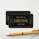 Esses cartões simples, porém muito elegantes, são perfeitos para dar aos seus convidados da festa para que eles possam resgatar uma bebida grátis em seu evento especial.