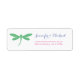 Enviem belos convites com estas elegantes etiquetas de endereço de retorno do tema da libélula. A cor da libélula é personalizável definindo a cor de fundo. O design apresenta uma bela fonte de script para o(s) nome(s) e uma fonte impressa para o endereço, ambos em uma cinza escura complementar. As cores padrão são verde-marinho para a libélula, azul de marmorá para os nomes e rosa para o endereço.