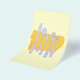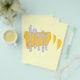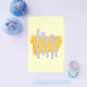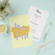 Um modelo de folheto de menu personalizado com letras cursivas elegantes e uma configuração de mesa com talheres prateados azuis em um lindo guardanapo amarelo dourado decorado em dourados. O verso tem espaço para o seu anúncio de folheto personalizado ou texto de menu e mais. Ou personalize seu folheto para adicionar imagens ou mais texto, altere as fontes, as cores do fundo e mais, até salve seu design para mais tarde.