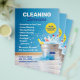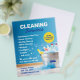 Publicando seus serviços de limpeza com este folheto divertido. Um balde de sabões, cheios de material de limpeza e faíscas ao redor, dá a este design azul de fundo uma sensação limpa e fresca. Permite editar seus serviços, local, nome do contato, número de telefone e email e anunciar um recurso em uma bolha amarela.