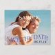O texto simples azul e preto na frente deste cartão postal Salvar a Data Casamento é atraente, mas não desenhar a atenção da sua própria fotografia. A parte de trás do cartão tem muito espaço e vários campos de texto para você fazer com que ele diga o que quiser!