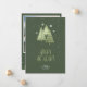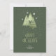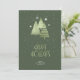 Este Cartões de foto de Natal branco apresenta um belo arranjo de árvores de Natal estilizadas e flocos de neve em verde-claro sobre um fundo verde-musgo mais escuro. O texto opcional "Feriados Felizes" na frente e um modelo foram fornecidos para adicionar sua foto e mensagem pessoal no verso. Procure ID861 a ID864 para ver opções de cores adicionais e outros produtos neste conjunto de design de Natal moderno.