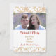 Este modelo de cartão de Natal achatado coloca suas fotografias no centro das atenções, com uma bela borda de padrão de flocos de neve em aquarela dourada e branca na parte superior e inferior. Seu texto personalizado está em dourado e vermelho correspondentes no centro, sobre um fundo branco. Mostramos um tema "Casados e Alegres", mas todo o texto é facilmente personalizado, então este design pode ser adaptado a qualquer situação, incluindo uma fotografia de família. A parte de trás do cartão é dourada sólida correspondente. *Crédito do padrão de flocos de neve para ATArtDigital*