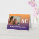 Um esquema de cores moderno neste cartão de aniversário de 80 personalizado para a mãe com uma imagem especial para você. Diga feliz aniversário, mãe, com este único cartão de aniversário e sua própria foto personalizada. Este cartão de comemoração de 80 anos tem uma simples tipografia branca feminina, permitindo que a ênfase se concentre em sua imagem. A cor laranja queimada a esmaecida roxa destaca a foto colocada no quadrado. O modelo permite que você edite Feliz Aniversário Mãe para Mamãe Mamma Moma ou qualquer variação que você queira. Você também pode editar a mensagem dentro do cartão. Então divirta-se e adicione uma foto, a qualquer ano e mensagens à frente e ao dentro. Coisas correspondentes disponíveis em nossa loja.