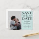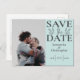 Um elegante anúncio de salvar a data é perfeito para colocar seus planos de casamento em movimento. Ele apresenta um modelo de foto e uma tipografia grande de 'salvar a data' com a adição de elementos botânicos, tudo sobre um fundo verde Sage. Personalize com seus próprios detalhes.